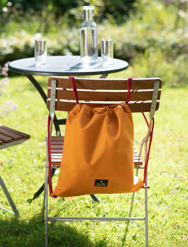 The "Eitäger" is ideal for a short trip or a shopping tour. The stylish bag can be worn as a backpack or casually slung over the shoulder. The top opening can be conveniently pulled together with the strap cord. A side pocket with a zipper offers space for a wallet, mobile and keys. The "egg carrier" is made of ECONYL® regenerated nylon, very robust and washable. With this "Eitäger" you are definitely well dressed. Stylish, sustainable, inclusive.